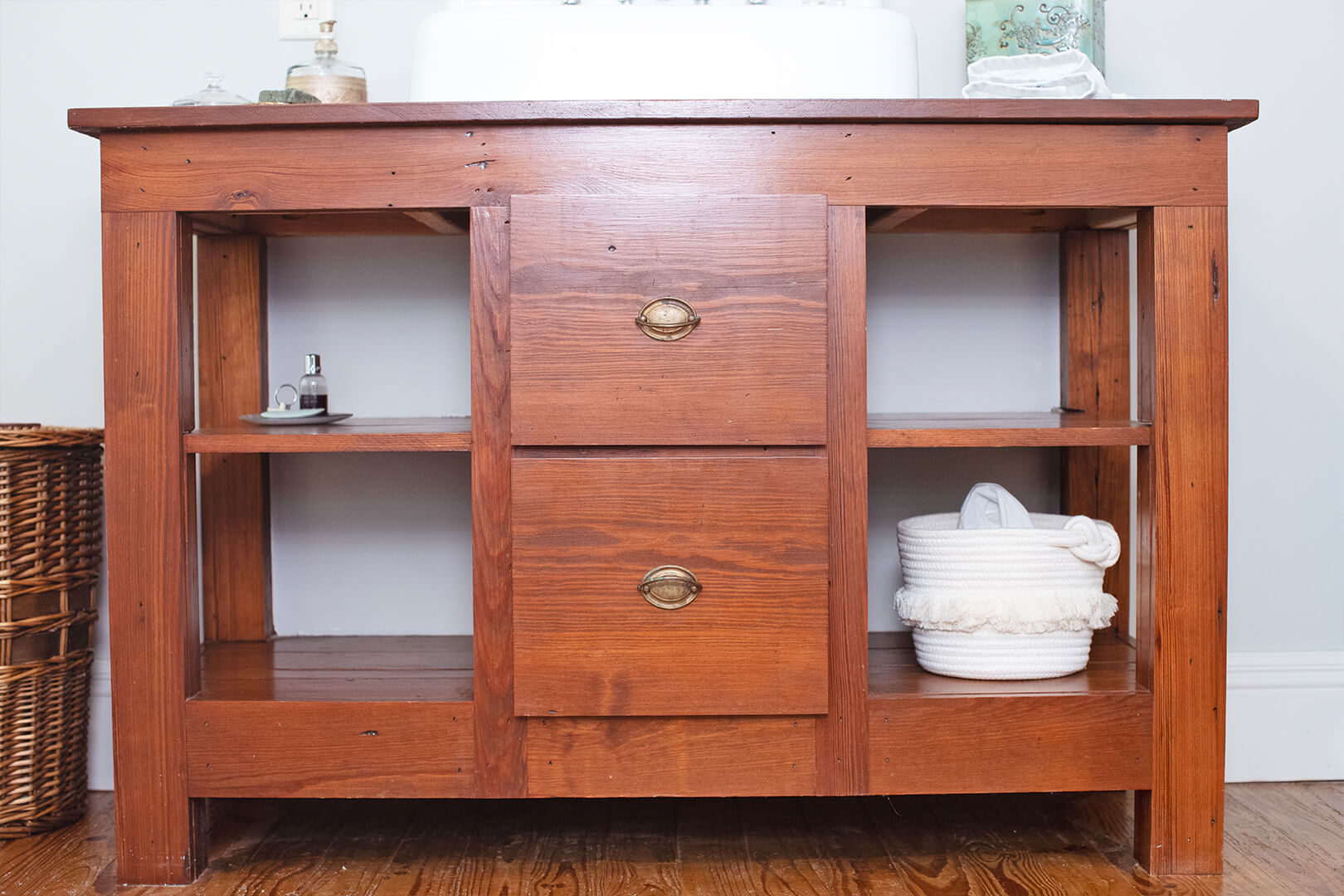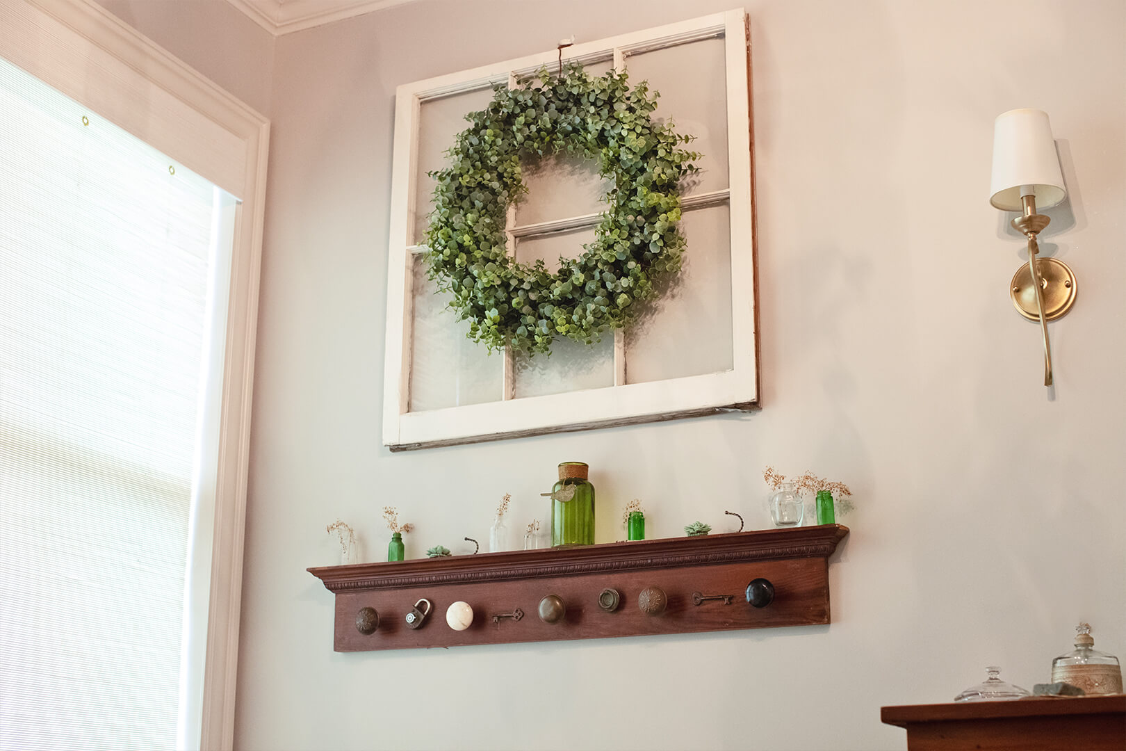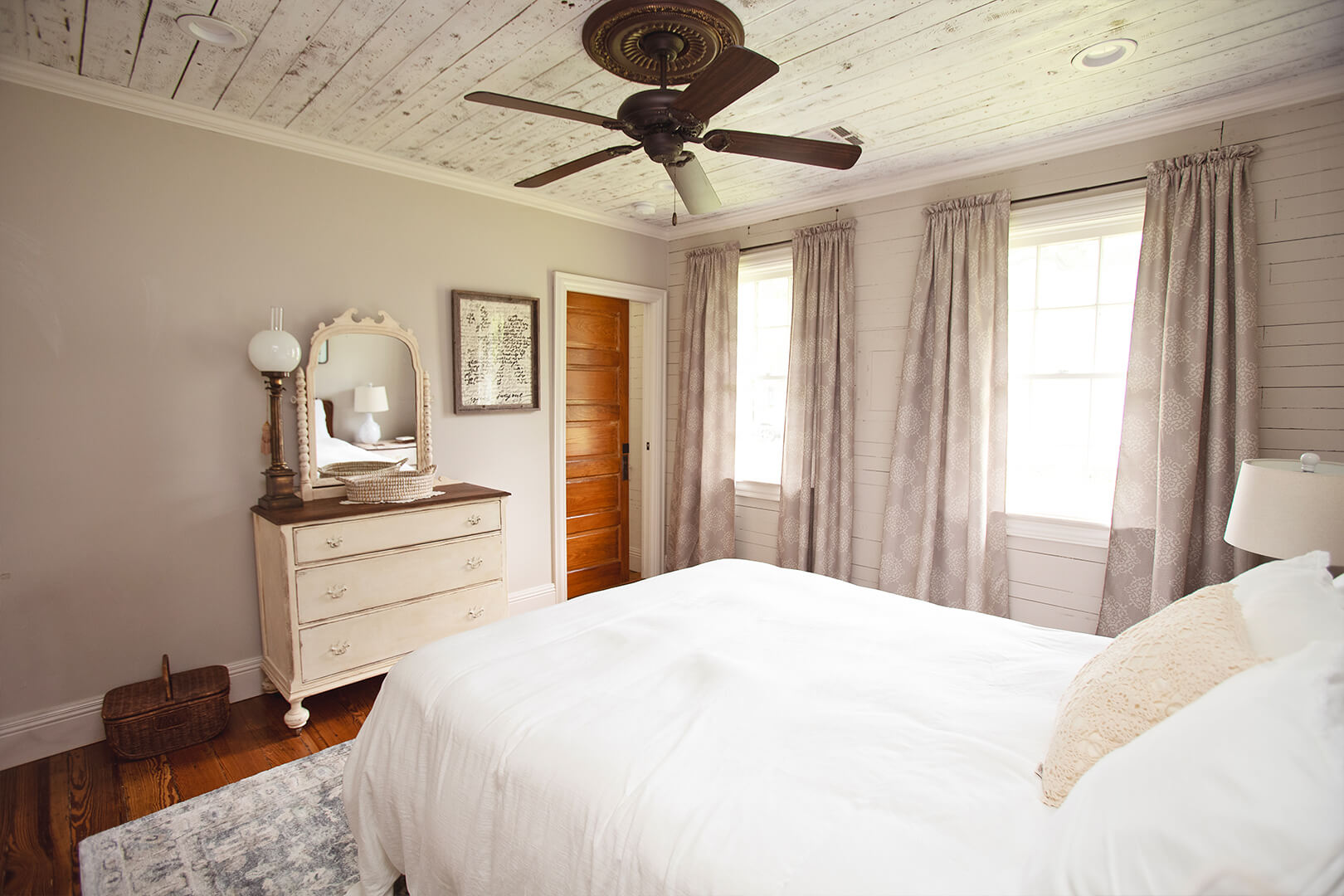 Work began on the one-bedroom cottage in April 2018. Her intention was to create a space where people feel at peace as soon as they walk through the door. She was obsessed with the idea of saving anything that could be saved and using it.