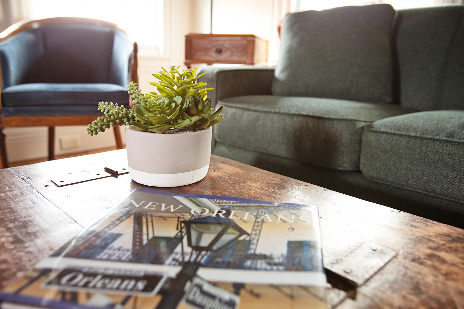 Del Lago Properties focuses on offering a unique and special experience to its guests. The Cottage on Pujo Street includes an original building from the early 20th Century with reclaimed woods and antiques from the proprietors’ families. The property still offers modern convenience including a washer and a dryer, separate tub and shower, a gas stove, central air and heat throughout, and other perks. Perhaps nothing exemplifies this attitude better than the tub which is a 1905 original refinished claw-foot tub. The goal is a friendly, relaxed atmosphere that suits either work or personal time off – or both. Del Lago welcomes guests who seek and appreciate what The Cottage on Pujo Street offers.